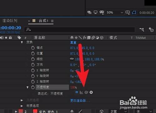 打开空白对象的不透明度属性,并创建一个不透明度的帧动画。