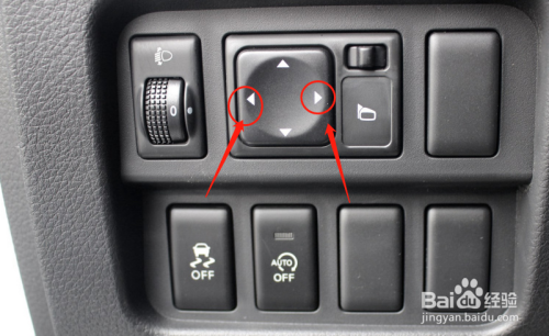 长按住左、右两侧按钮,调节后视镜左、右角度转动。