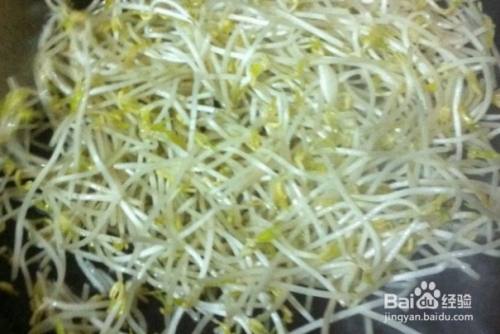 豆芽炒软后,放盐和生抽,翻炒均匀。