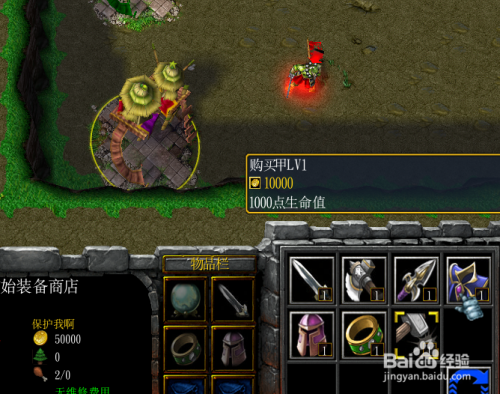 看到初始装备商店,赶紧过去,先点击选中商店,然后进行装备购买,如下图所示。