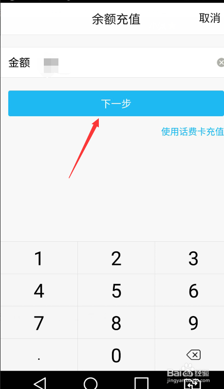 然后点击充值,就弹出下面的页面,在相应的对话框输入需要充值的额度,点击下一步。