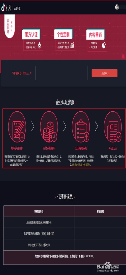 点击“立即认证”,登录新注册的抖音账号后,点击“开启认证”,如实填好企业信息资料后,点击“提交资料”