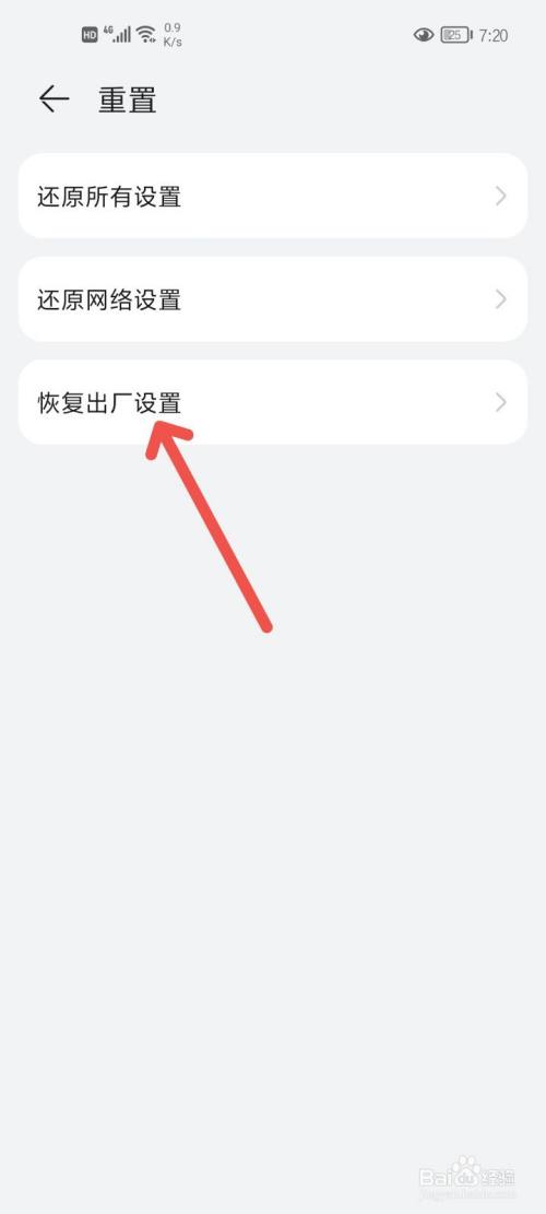 找到【恢复出厂设置】选项,点击即可回到出厂设置的状态。