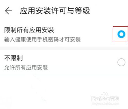 4选择限制所有应用安装 进入应用安装许可与等级界面,勾选限制所有应用安装即可。  END END