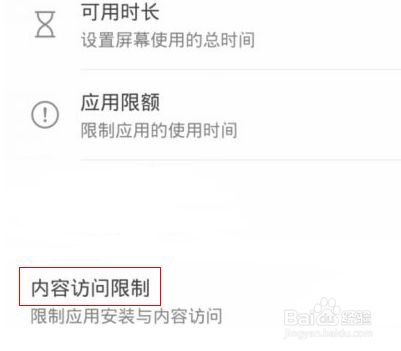 2点击内容访问限制 进入健康使用手机界面,点击内容访问限制进入。