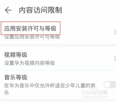 3点击应用安装许可与等级 在内容访问限制页面,点击应用安装许可与等级进入。