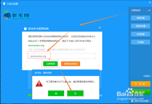 点击设置选项,根据提示输入“laomaotao.org”,然后点击“立即取消”