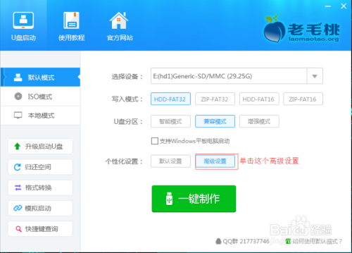 注意这里我们先不要慌着点一键制作,先点击高级设置
