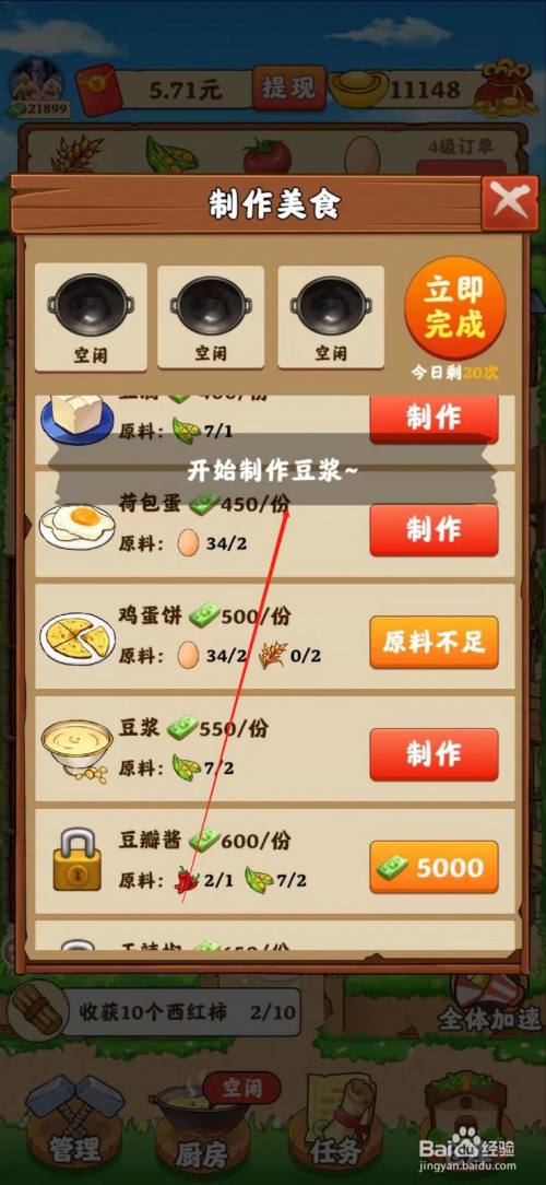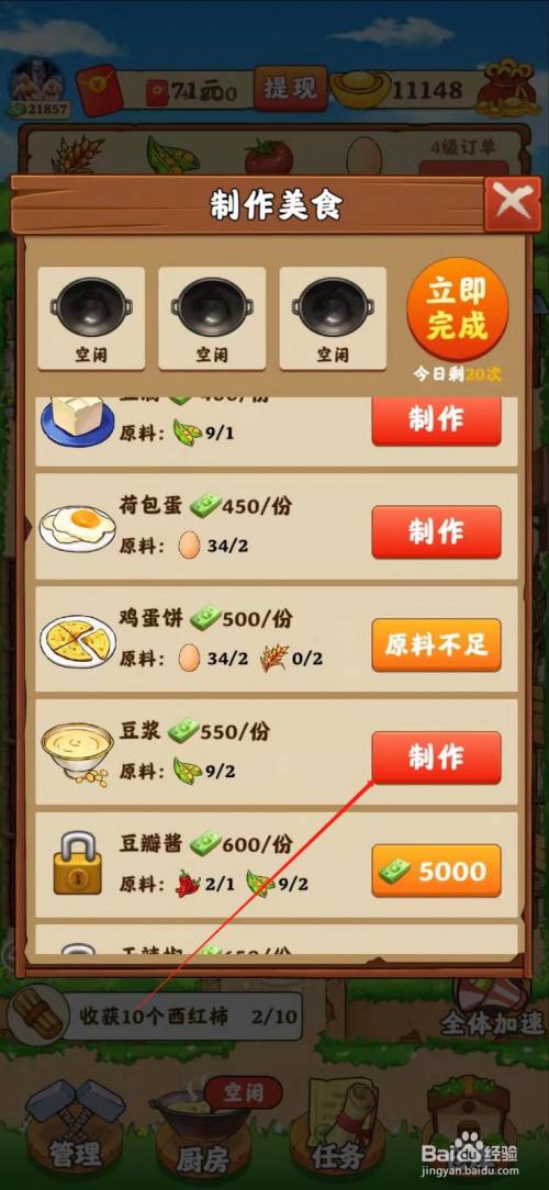 在制作美食中,我们点击豆浆后边的制作,如下图所示。