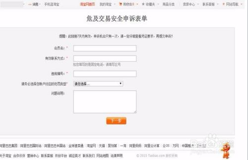 第三步打开申诉入口-填写表单信息-会员名-联系手机号-违规类型(违规类型可以到违规详情里面查看)-问题说明(说明你申诉的问题)然后点击-下一步提交完成。