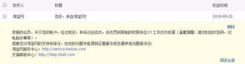第四步申诉提交成功后随时到淘宝站内信查看结果,申诉成功后,一般该处罚所限制的权限将在3个工作日内恢复。