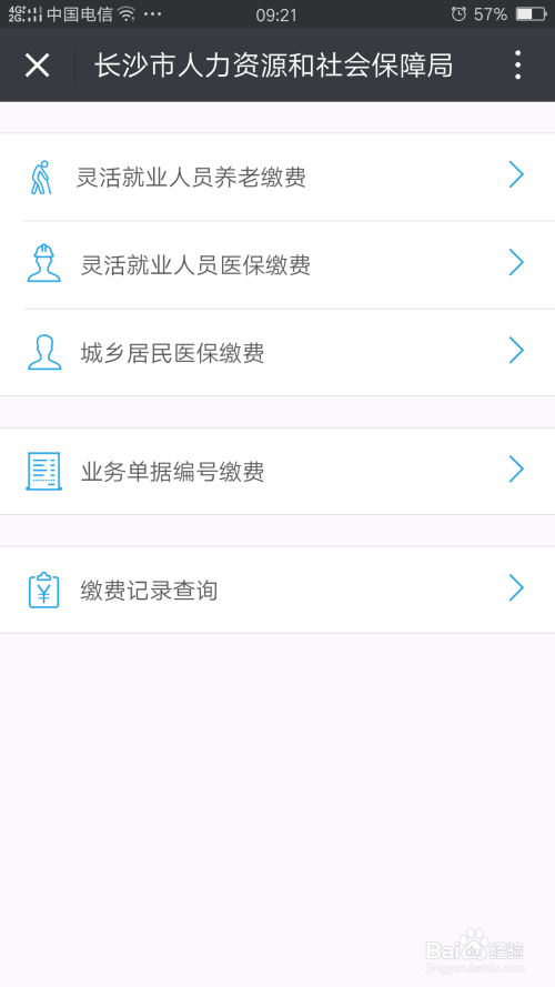 加载完页面会显示“灵活就业人员养老缴费”、“灵活就业人员医保缴费”、“城乡居民医保缴费”等。大家根据自身情况点击选项进入。