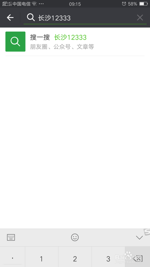 打开微信,点击主页面右上角的放大镜标识,输入“长沙12333”,搜索并关注。