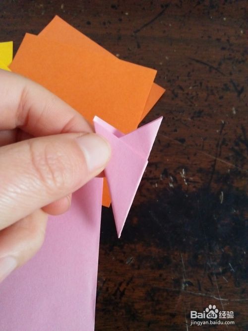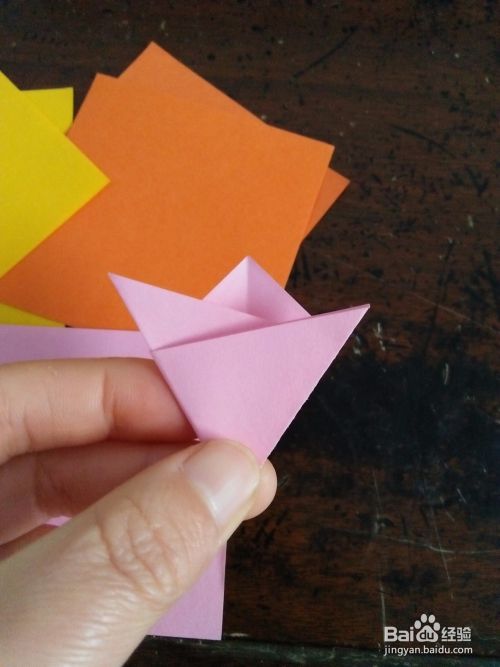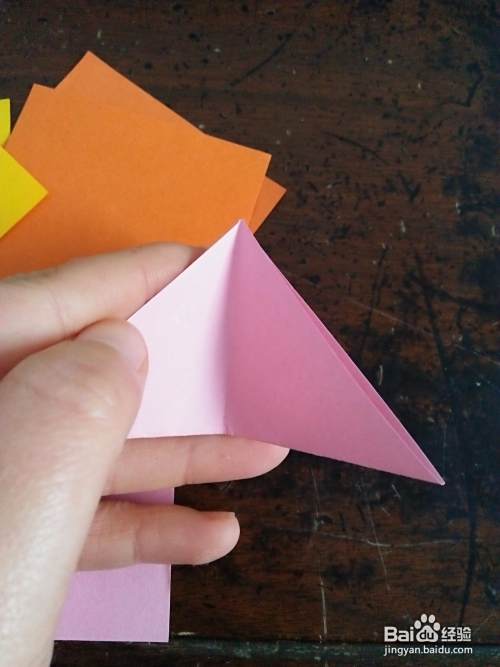 我们以底边的中点为圆心,我们把三角形三等分,然后把左右边分别向另一方对折。