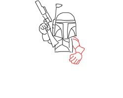接着,勾画出左边的手并拿着枪。