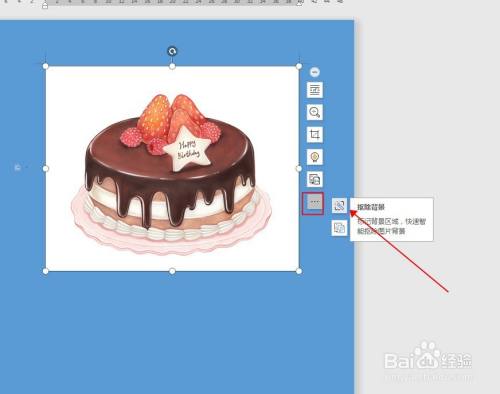 选中图片,单击右侧工具栏最下方,选择抠除背景选项。