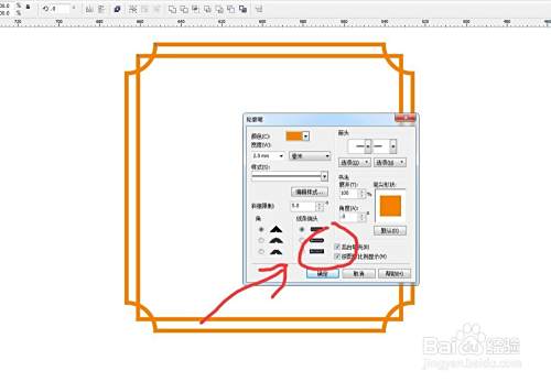 选择这两个矩形,打开轮廓笔工具,将线条加粗根据文件大小而定,然后设置轮廓边的颜色