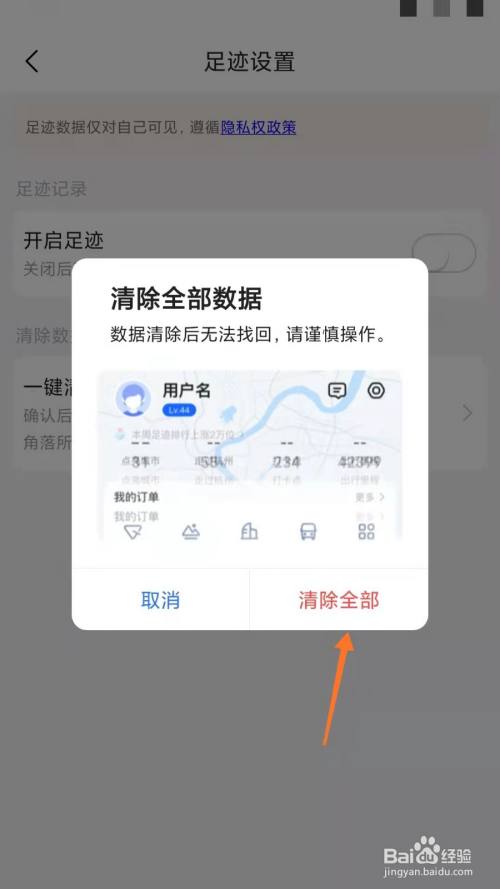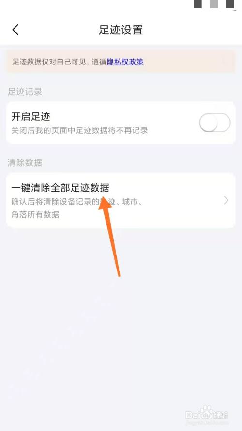 找到“一键清除全部足迹数据”。