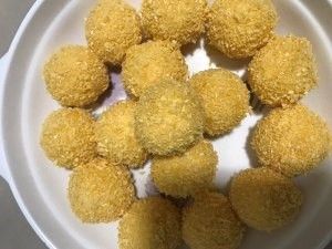 裹好面包糠的红薯团