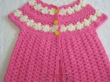 这里注意了,不跟第一个花一样钩三个网了,只要两个网,两短针后就继续下面一朵花了)这样重复第二步动作钩到你需要的长度为止,我的两个短条是八个小花(前片内框也就是袖笼处八个花),两条六个花的(袖子上的花是六朵)长的一条我钩了28朵小花,这个也是根据自己的身体说话,不管小孩还是大人,根据自己身材增减花朵数量