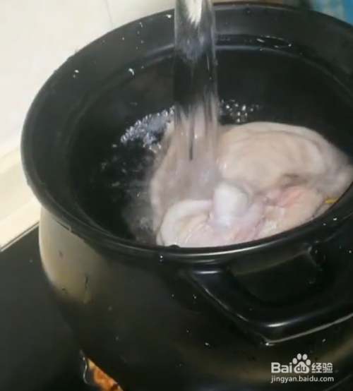 放进瓦锅中,加适量清水,盖上锅盖,炖煮2个小时。