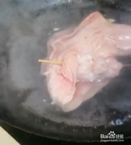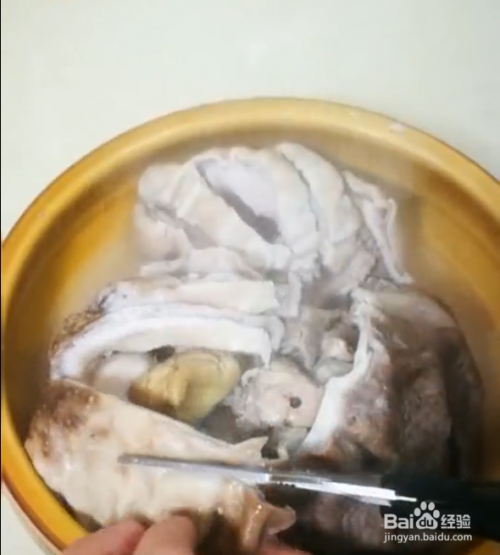 最后用剪刀把猪肚剪开,根据个人口味放盐调味。