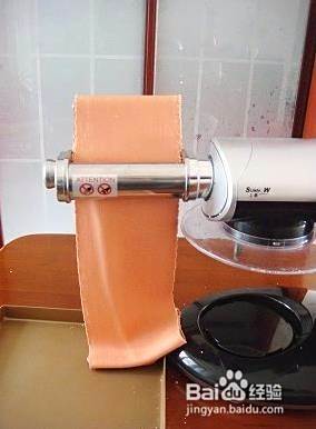 6.安装好厨师机的压面工具,把切好的厚面片放到上面压。开始压一定要开到一档压,面出来比较粗糙,多压几次,面片就光滑成大片了。逐渐从2档过度到8档,压了几次后面片光滑了许多,开到8档压出来是最下面那个,面片也薄了。