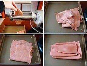 9.依次做好西红柿、菠菜和紫甘蓝的面条。