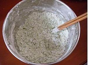 3.以菠菜为例吧,用筷子搅拌成絮状。