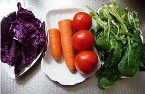 1.准备好所用的菜,洗干净。分别把这些菜加少量水用榨汁机或料理机榨汁。