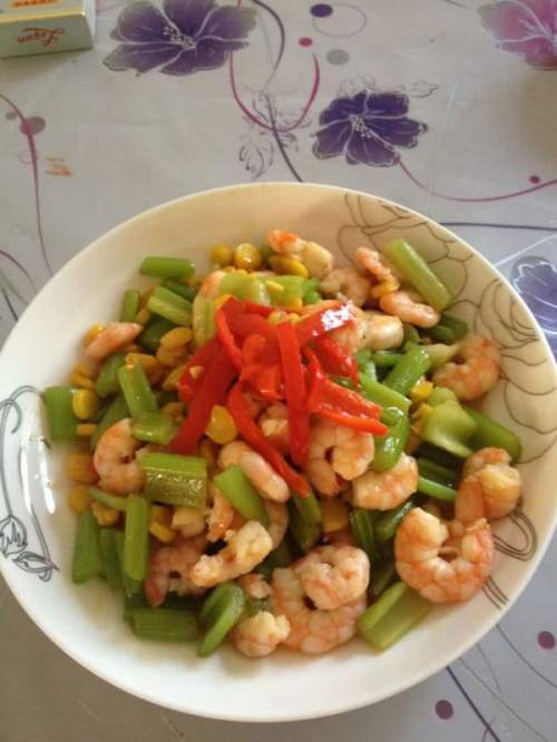 1虾洗净。处理好剝壳。2加入少许盐淀粉,姜汁胡椒,抓匀调味,二十分钟。2把芹菜叶子掰掉,老的部分掐掉洗净切成段。3加入盐腌渍入味。一刻钟就差不多了。4锅里加油,油温热后倒入虾仁翻炒。待颜色变白起锅。5加油倒入辣椒芹菜粒(芹菜出的水不要喔)翻炒加生抽糖。后加入玉米粒。6火候差不多时加入虾仁翻炒起锅。