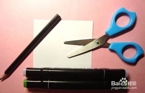 准备好,制作漂亮的儿童雨伞儿童剪纸手工的材料和工具,有白纸、正方形卡纸、马克笔、铅笔,剪刀,如下图所示。