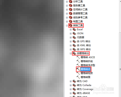 在ArcToolbox内点击转换工具\由栅格转出\栅格转点。