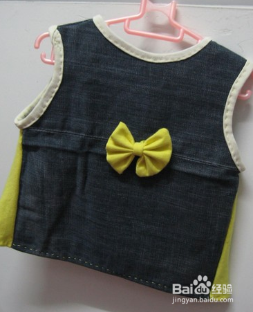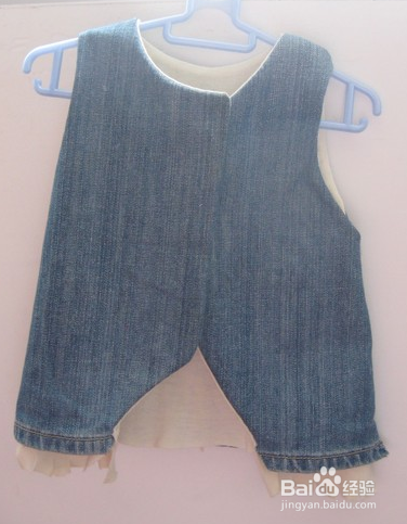 你可以把牛仔裤倒过来,裤腰在腰部,把前后裤裆挖掉,做领圈,侧袋下方挖出袖隆,然后把肩缝缝上,挖掉边口撕毛,一件马甲出世了。