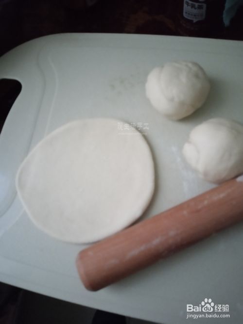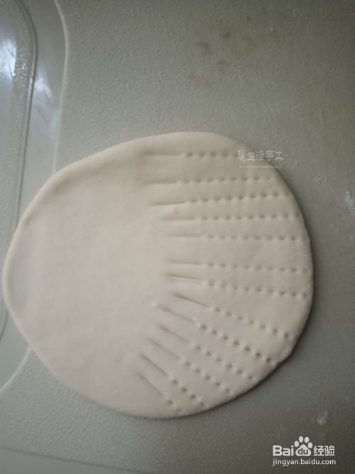把面剂子粘上面粉全部揉成小面团,然后用擀面杖擀成圆饼,将圆饼的一半用刀背压出压痕。