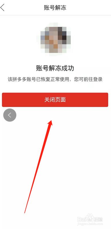 然后账号就解冻成功了,我们点击 关闭页面,然后再登录拼多多就可以了。