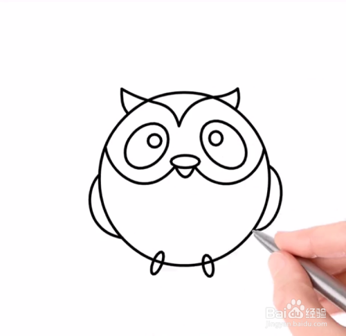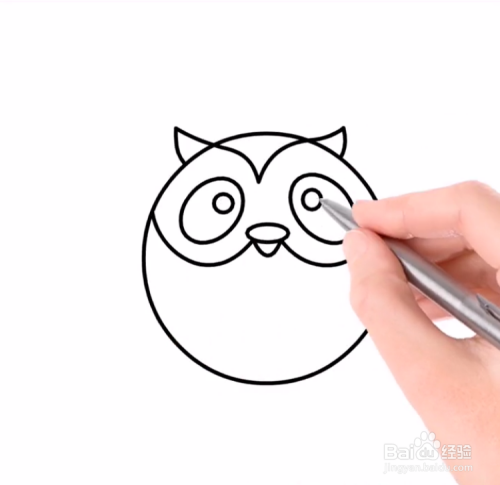 再画出猫头鹰的眼睛,嘴巴,如下图所示。