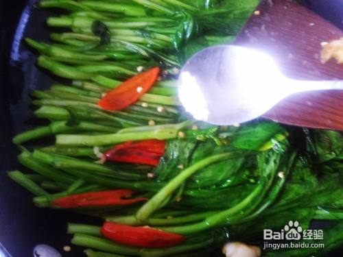 然后撒少量的盐、几粒味精再翻压两遍就可以出锅。