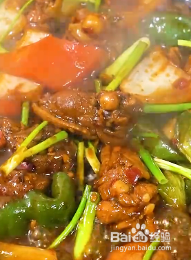 起锅烧油,放葱姜炒香,干辣椒、花椒、桂皮、豆瓣酱、香辣酱,炒香、放鸡肉,炒匀