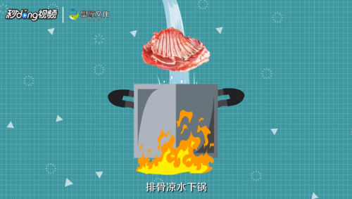 4砂锅内重新放清水,将排骨放入锅内,姜、葱一起放入锅中,滴入少许料酒,点火。