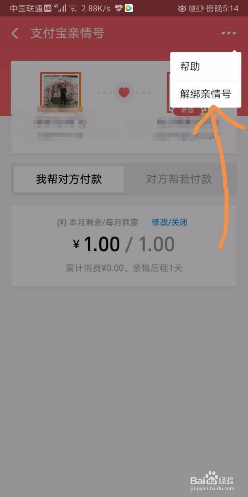 如果直接解绑,点击右上角...,选择解绑亲情号,提示需要先关闭该亲情号的支付功能。