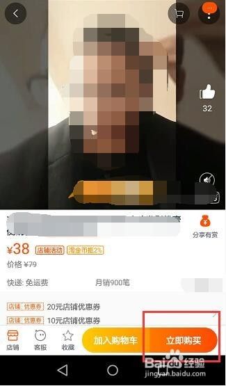打开手机淘宝,选好商品后,点击下面立即购买