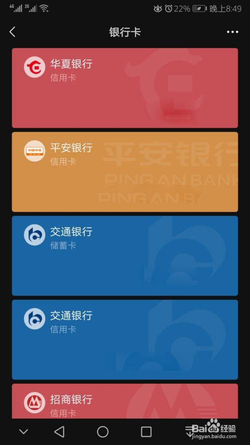 进入界面后会看到我们绑定的银行卡,点击需要解绑的卡,如图所示: