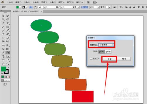 首先,我们先在间距一栏设置为”平滑颜色“,点击确定按钮