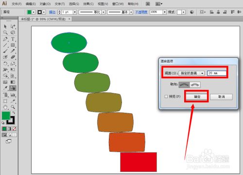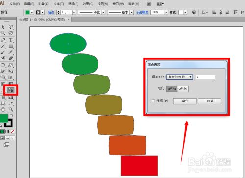 双击软件左边工具栏里面的”混合工具“,就会弹出一个”混合选项“的设置面板,如图所示