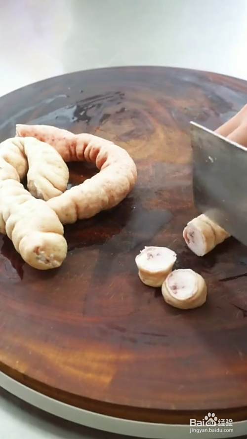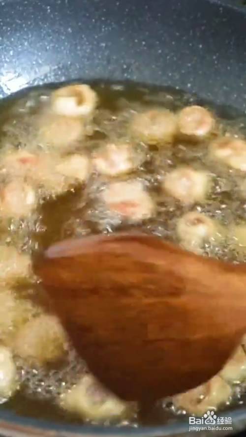 肥肠切成小段,五成油温下锅炸,炸制至金黄捞出控油