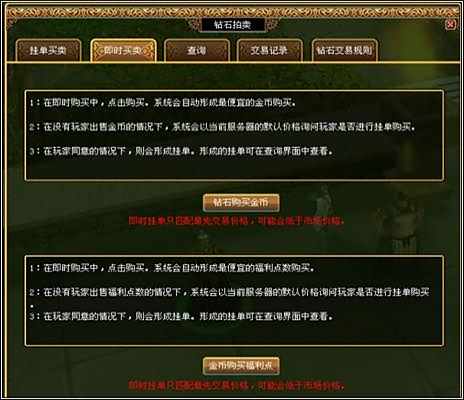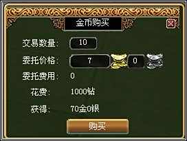 1、 如想购买金币,可以在即时购买中直接购买当前最便宜的金币。在没有玩家出售金币的情况下,系统会以当前服务器默认价格,询问玩家是否形成挂单购买。