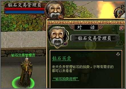 玩家可在成都【311,-546】处或其他重要城镇找到钻石交易管理员,如下图所示: