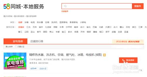 我们点击这个网站,进入网页后。可以看到一个维修家电的地方。