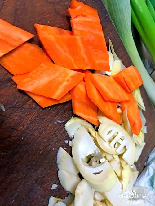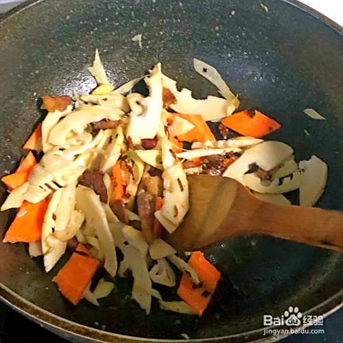煸炒出油 加葱花爆香 下胡萝卜 笋片 大头菜